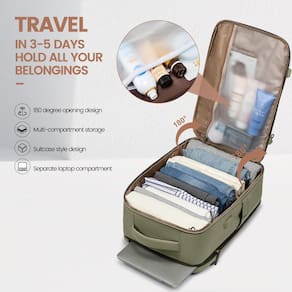 LOVEVOOK Mochila de viagem para mulheres e homens, mochila de mão aprovada por companhias aéreas, H-pea verde-bege-verde, Moderno - Capacidade expansiva de 40 L para viagens organizadas – viaje com tudo o que você precisa viajar por 3 a 5 dias, organizado perfeitamente nesta mochila versátil. Seu compartimento principal estilo bagagem, seção separada para laptop e bolso frontal com zíper com vários bolsos oferecem conveniência incomparável - Leve e resistente – Feita de materiais resistentes a rasgos e resistentes à água, esta mochila de viagem feminina pesa apenas 1 kg. Complementada por artesanato requintado e pontos de desconforto reforçados. Esta mochila resiste aos rigores da viagem - Viagem aérea sem esforço – Deslize pelos aeroportos com facilidade! Esta bolsa de mão, com tamanho de 45,7 x 35,5 x 20,3 cm, se alinha com a maioria dos requisitos de bagagem de viagem de itens pessoais de companhias aéreas. O design de abertura de 180 graus para compartimentos acelera as verificações de segurança, tornando sua experiência no aeroporto tão suave quanto suas viagens - Focada no conforto e proteção – Desfrute de conforto ergonômico com alças acolchoadas e uma malha respirável nas costas. A mochila também possui um compartimento de laptop acolchoado com espuma para segurança extra de seus eletrônicos. Com um bolso molhado exclusivo, pode colocar toalhas molhadas ou roupas suadas - Segurança e conveniência – Viaje com tranquilidade graças a um bolso antirroubo e uma alça de bagagem. Com uma porta de carregamento USB (o power bank não está incluído) e um cabo de dados embutido, mantenha seus dispositivos ligados em movimento - Extras para tranquilidade – Completo com 2 organizadores e uma bolsa de sapatos para uma organização ideal. SERVIÇO PERFEITO - Nossos vendedores dão muita importância à experiência de compra de nossos clientes. Qualquer dúvida, sinta-se à vontade para entrar em contato conosco. A mochila LOVEVOOK fornecerá atendimento ao cliente 12 horas