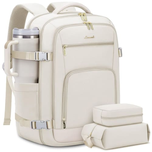 LOVEVOOK Mochila de viagem grande para mulheres e homens, mochila de viagem de 40 L para aviões, bolsa de viagem TSA para laptop de 17 polegadas, aprovada por companhias aéreas essenciais de viagem à prova d'água com 2 organizadores - Aprovado por companhias aéreas e TSA: experimente viagens aéreas sem desconforto com nossa mochila de mão. Medindo 35,5 x 21 x 47 cm, cabe confortavelmente em compartimentos suspensos e sob o assento. Projetada para verificações rápidas de segurança, abre 180 graus, tornando-a a companhia de viagem perfeita para suas viagens. - Grande capacidade com ótima organização: esta mochila de viagem possui uma capacidade generosa de 40 L, perfeita para 3-5 dias de itens essenciais de viagem. 3 compartimentos grandes e 18 bolsos, garantindo que tudo esteja bem organizado. Um compartimento dedicado e acolchoado cabe em um laptop de 17,3 polegadas para máxima segurança. O bolso elástico para garrafa de água segura com segurança uma garrafa de 500 ml. Este design versátil torna esta mochila perfeita para viagens, viagens de negócios, escapadelas de fim de semana e uso diário. - Resistente e confortável: atualizada com zíperes à prova de explosão e tecido resistente à água, esta mochila foi construída para longevidade. Suas alças de ombro reforçadas e resistentes a rasgos e acolchoamento de esponja respirável garantem conforto e longevidade. É perfeita como uma mochila de transporte para aviões, mochila de viagem de um dia de fim de semana, mochila noturna, mochila de acampamento para caminhadas, mochila de negócios, mochila de trabalho, mochila universitária ou mochila casual. - Com 2 organizadores e bolso úmido: nossa mochila de viagem feminina equipada com 1 bolso de mão, é ideal para guardar roupas íntimas, meias e roupas pequenas. Uma bolsa de sapato equipada com 42 cm de comprimento, pode armazenar de 1 a 2 pares de sapatos. O bolso úmido impermeável de alta densidade é perfeito para produtos de higiene pessoal e roupas úmidas, mantendo seus pertences de viagem organizados e separados. - Presente ideal para entusiastas de viagens: a mochila LOVEVOOK para mulheres é um presente perfeito para aniversários, Ação de Graças, Natal, Ano Novo e Dia dos Namorados. Adequada para homens e mulheres, esposa, namorada, mãe, filha e amigas, é uma companhia versátil como uma mochila de viagem aprovada em voo, mochila para laptop de viagem ou pacote de itens pessoais.