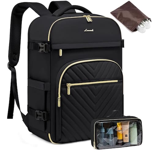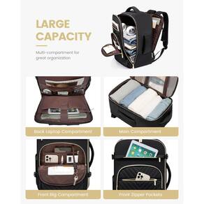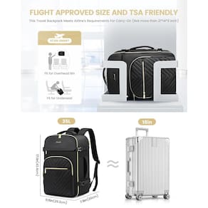 LOVEVOOK Mochila de viagem grande para mulheres, TSA, mochila de mão para aviões, item pessoal, bolsa de viagem, mochila para laptop, Preto (3 peças), Mochilas de viagem - Aprovada por companhias aéreas e amigável à TSA: 43 x 29 x 20 cm, 1 kg, a mochila de mão atende à maioria dos requisitos internacionais de bagagem de mão, como Spirit, Frontier, Jet Blue, Easy Jet e outras companhias aéreas econômicas. Cabe sob o assento ou no compartimento suspenso, o que a torna o item pessoal perfeito para viagens aéreas. No ponto de controle, desdobra o compartimento do laptop livremente de 90 a 180 graus, fazendo você passar rapidamente pela segurança do aeroporto e manter os outros itens organizados. - Grande capacidade e bem organizada: esta mochila de viagem tem capacidade de 35 L, 4 compartimentos principais e 19 bolsos, projetada para permitir que você separe e organize seus itens pessoais de viagem facilmente, espaço espaçoso pode até caber em 3 a 5 dias de itens essenciais de viagem. Um elástico embutido para manter os itens no lugar. Deixa suas coisas arrumadas e bem organizadas. - 2 organizadores e bolso para itens úmidos: equipado com 2 organizadores extras, incluindo 1 bolsa de artigos de higiene à prova d'água e 1 bolsa para sapatos. Esta mochila LOVEVOOK também tem um bolso molhado resistente à água para manter os itens secos e molhados separados, protegendo outros itens de vazamentos ou umidade. Se você tiver roupas ou toalhas molhadas, basta colocá-la nesta mochila noturna de fim de semana. - 👍Design durável e confortável👍 Esta bolsa de mão é feita de materiais duráveis, leves, resistentes a rasgos e resistentes à água. Inclui uma capa de carrinho e um bolso antirroubo para maior segurança e conveniência ao viajar. As alças de ombro apresentam uma malha grossa e respirável para diminuir a pressão no ombro, tornando a mochila mais leve. Ela também tem 2 alças acolchoadas na parte superior e lateral para facilitar o levantamento dos compartimentos aéreos. - Escolha de presente e garantia pós-venda: a mochila para laptop LOVEVOOK é a escolha perfeita de presente para sua esposa, namorada, mãe, filha, amigas, etc. em aniversários, Dia de Ação de Graças, Natal, Ano Novo, Dia da Mulher e Dia dos Namorados. Adequado para mulheres ou homens. Prometemos excelente suporte pós-venda, artesanato de qualidade, garantia de um ano e atendimento ao cliente 24 horas por dia.