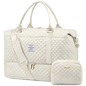 Bolsas de viagem femininas - ?Bolsa de viagem com compartimento para sapatos + bolsa de banheiro separada ?Esta bolsa de viagem para mulheres vem com uma bolsa de higiene pessoal de US $15 para guardar seus cosméticos/produtos de higiene pessoal. Compartimento inferior plano separado desta bolsa feminina pode guardar seus sapatos ou roupas sujas para facilitar a separação de roupas limpas ao viajar. Se você é uma mãe novata, a parte inferior também é perfeita para armazenar fraldas/lenços/itens de bolsa de fraldas. Também pode ser usada como bolsa hospitalar, bolsa para mamãe e bolsa médica. - ?Bolsas de transporte para aviões?Tamanhos: 48 x 23 x 34 cm, 1 kg, LOVEVOOK bolsa de fim de semana para mulheres atende à maioria dos requisitos internacionais de bagagem de mão. Cabe no compartimento superior e embaixo do assento como itens pessoais em voo. A manga de carrinho integrada desliza sobre a alça de bagagem, facilitando as viagens no aeroporto. Um bolso com zíper na parte traseira para guardar seu smartphone, identidade ou passaporte. Sua bolsa de embarque ideal para o fim de semana para viagens de negócios ou pessoais. - ?Bolsa estilosa de fim de semana e bolsas de noite para mulheres?Esta bolsa grande pode servir em 3 a 5 dias de itens essenciais diários. Vários bolsos para manter seus itens pessoais organizados: um compartimento principal espaçoso com 5 bolsos grandes para itens pessoais e na frente da bolsa esportiva para viagens, há um bolso para facilitar o acesso a eletrônicos ou materiais de viagem. Com aparência elegante e linda. Nossa bolsa esportiva acolchoada alcança a maior demanda feminina urbana e fantasia em bolsa de viagem. - ?Bolsa de ginástica separada e úmida? Um bolso forrado de PVC à prova d'água com zíper pode ajudar você a separar itens secos e molhados. Se você tiver roupas ou toalha molhadas, pode colocá-la nesta bolsa de ginástica para mulheres. Nossa bolsa de ginástica feminina é uma companhia perfeita e confiável para esportes internos e externos. É perfeita para treino, ioga, tênis, basquete, natação, acampamento e muitas atividades ao ar livre. - ?Bolsa esportiva multiuso e serviço perfeito?Use-a como bolsa esportiva para viagens, bolsa de fim de semana para mulheres, bolsa de viagem para itens pessoais, bolsa de mamãe para hospital, bolsa de ginástica para mulheres, bolsa de mão ou bolsa de laptop. Ótimo presente de aniversário/Ação de Graças/Natal para seus amigos e familiares. Com o serviço pós-venda confiável e artesanato fino da LOVEVOOK, prometemos que, se você não estiver satisfeito dentro de um mês, poderá reembolsar incondicionalmente.