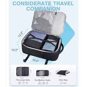 A BAGSMART lançou uma nova mochila de viagem expansível, você pode sair livremente como quiser. Esta mochila de computador é projetada para viagens, design expansível foi adicionado pela primeira vez, com 25 a 40 L de espaço de armazenamento da mochila para mudar como você desejar, a mochila carrega cubos de embalagem separados para manter suas roupas limpas e arrumadas, reduz problemas de armazenamento e facilita a viagem. - Aprovada por companhias aéreas: tamanho da mochila de viagem - 47 x 31 x 26 cm, capacidade máxima - 40 L. A mochila de mão atende ao padrão exigido por quase todas as principais companhias aéreas e cabe no compartimento superior e sob o assento. O design de abertura plana ajuda você a passar pela segurança rapidamente. Esta mochila de viagem é perfeita para viagens de fim de semana, viagens de negócios, caminhadas, acampamento, etc - Mantenha tudo organizado: a coisa mais importante em viajar é se divertir, não ficar preso em tarefas domésticas. A mochila para laptop vem com 2 bolsas de armazenamento de roupas e 1 bolsa para sapatos. Diferentes tamanhos podem ser utilizados para diferentes fins de embalagem, permitindo que você armazene suas roupas de forma mais conveniente e organizada. A coisa mais importante sobre viajar é se divertir, não ficar amarrado em tarefas domésticas. A bolsa de sapatos serve para 1 a 2 pares de sapatos ou pode ser uma bolsa de roupa para separar o seu produto sujo - Atualização iterativa: o design expansível e a grande capacidade (25 a 40 L) podem armazenar de 3 a 5 dias de roupas conforme você precisar. A mochila também tem um elástico embutido, que pode comprimir as roupas, evitando que caiam, maximizando o uso do espaço de armazenamento da mochila e economizando 10% de capacidade adicional - Projetado para viagens: design confortável com fluxo de ar nas costas com acolchoamento espesso e macio, alívio eficaz da pressão traseira, enquanto equipado com fivela ajustável no peito, para que você possa caminhar mais facilmente. A mochila para computador é feita de material de poliéster durável, oferecendo proteção mais segura para seus pertences. - Multiuso: seu visual chique a torna uma mochila universitária, mochila de viagem, mochila de computador, mochila de livros, mochila de trabalho. A bagagem de mão aprovada pela companhia aérea pode ser instalada acima e embaixo do assento, é ideal para uma viagem de fim de semana, viagem de negócios e viagens. Esta mochila grande é perfeita para faculdade, trabalho, uso diário, atividades ao ar livre ou até mesmo perfeita como presente para amigos, familiares, mulheres, para aniversário.