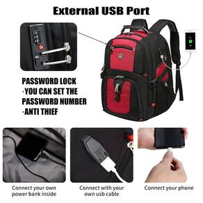 Mochila de viagem para laptop SHRRADOO Extra Large 50L vermelha 17 polegadas