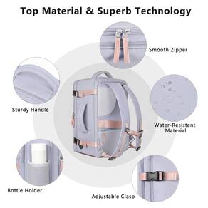 Características da mochila Snoffic para laptop de viagem. 1. O bolso para garrafa de água é projetado para garrafa de água ou guarda-chuva, etc. 2. O compartimento para laptop é adequado para laptop de 17,3 polegadas ou tablet de 12,9 polegadas, e o acolchoamento espesso protege os produtos eletrônicos contra impactos. 3. A separação úmida e seca. Armazenamento de divisória de suprimentos de viagem mais organizado; 4. A porta de carregamento é projetada para carregar celulares/tablets em qualquer lugar, a qualquer hora; 5. Você pode colocar a mochila na mala para liberar suas mãos e costas devido às alças de bagagem da mochila; 6. O bolso antirroubo na parte de trás da mochila para evitar a perda de objetos de valor como celular, cartão de identidade ou passaporte enquanto estiver na fila ou caminhando; Embalagem: mochila de viagem grande + 2 bolsas de higiene pessoal Cor: preto / rosa / bege / cinza e roxo / azul e verde Material: poliéster Tamanho: 16,5 x 11,4 x 7,8 polegadas (42 x 29 x 20 cm) Peso: 2,5 lbs (1,15 kg. Este item não se destina a ser utilizado por crianças a partir de 3 anos. - Compartimento acolchoado para laptop e grande capacidade: a mochila acolchoada para laptop de 39.6 cm comporta bem como notebook/laptop de 15 polegadas, 14 polegadas e 13 polegadas. laptop e também protege produtos eletrônicos contra impactos. Além disso, a mochila tem uma grande capacidade, um compartimento seco e molhado e vários bolsos, então nossa mochila de viagem para laptop pode organizar sua viagem - Orifício de carregamento e design antifurto: nossa mochila de mão tem design de orifício de carregamento que permite a passagem do cabo de dados, para que você possa carregar seu telefone enquanto caminha. Além disso, o bolso antirroubo na parte de trás da mochila de viagem para mulheres e homens permite que você coloque telefone, passaporte ou carteira nela. Tornando sua viagem e viagem mais convenientes onde quer que você vá - Mochila de item pessoal: Snoffic mochila de viagem aprovada em voo é de 43 x 30 x 20 cm (C x L x P) e pesa 1,14 kg. Atende aos requisitos de itens pessoais das companhias aéreas. Se você não quiser carregá-la nas costas, você pode guardar as alças da mochila e é uma mala compacta - 2 bolsas de higiene complementares: a embalagem vem com duas bolsas transparentes à prova d'água, medindo 20,5 x 15 x 6 cm e 17 x 12 x 6 cm. A bolsa transparente armazena os artigos de lavagem de forma organizada e limpa e tem as vantagens de conveniência - Material superior e excelente tecnologia: nossa mochila de viagem é feita de tecido composto de sarja top 290. Existem 148 procedimentos envolvidos na fabricação para garantir a qualidade. A mochila é à prova d'água e evita que seus itens fiquem molhados