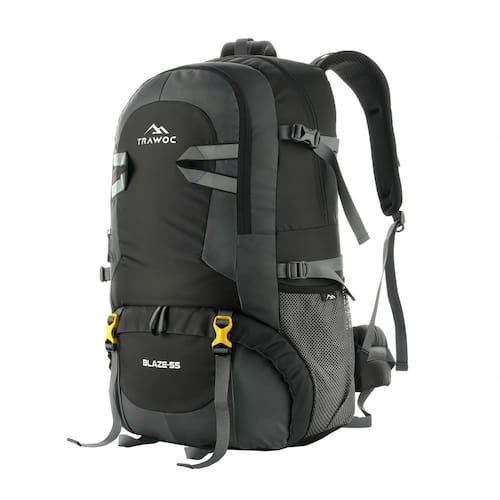 Mochila de viagem TRAWOC BLAZE 55L para acampar e caminhar preta