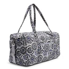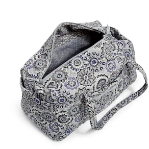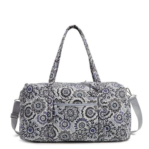 Vera Bradley Bolsa feminina de viagem grande de algodão, Medalhão tranquilo - algodão reciclado - Algodão reciclado lavável na máquina – o tecido de algodão com o qual você está familiarizado foi reimaginado; o tecido externo é feito com 50% de fibras de algodão reciclado e tem todo o conforto, suavidade e vibração que você conhece e ama. - Torne suas viagens uma brisa – com uma alça de 38 cm e uma alça ajustável removível adicional de 134,6 cm, você pode pegar as alças duplas ou jogar sobre o ombro para facilitar as mãos livres - de qualquer forma, o fecho de zíper superior mantém seus itens pessoais protegidos - Embalagem com estilo – Ignore a bagagem de mão extra e aproveite os bolsos internos desta espaçosa bolsa esportiva – com 3 bolsos de malha elástica para organizar seus cosméticos, produtos de cabelo, joias e outros produtos de higiene pessoal - Essenciais na ponta dos dedos – o exterior possui 1 bolso com zíper e 3 bolsos deslizantes - ideal para guardar carteiras, cartões de embarque, material de leitura ou lanches para mantê-los rápidos de acesso e firmemente presos para o seu voo - Elegante, leve e com o tamanho certo – a bolsa de viagem grande mede 30 cm de altura, 56 cm de largura e 30 cm de profundidade - dando a você uma bolsa de viagem espaçosa e essencial para sua próxima escapada