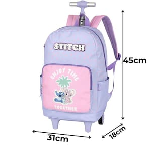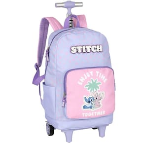 Mochila com rodinhas e puxador regulável, perfeita para acompanhar o crescimento da criança.