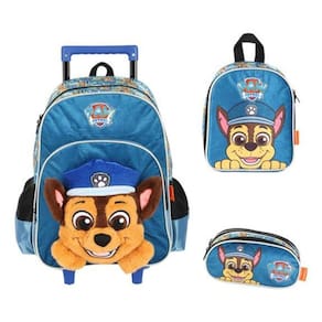 Kit Mochila Carrinho Em Pelúcia 3D Patrulha Canina