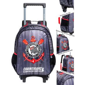 Mochila de rodinhas infantil com alças de costas acolchoadas, com o tema do sport club corinthians paulista, um dos principais clubes de futebol do brasil. Ideal para uso escolar, especialmente por crianças torcedoras do time. A combinação de alças, rodinhas e espaço interno torna a mochila funcional e prática para o dia a dia. Com frente em poliéster com patch e espuma. Sublimação na parte frontal, além disso, os puxadores emborrachados personalizados garantem um toque divertido e facilitam o uso no dia a dia.Cor predominante: preto e cinza, com detalhes em vermelho e branco. Estampa frontal: o grande destaque é o escudo oficial do corinthians, que ocupa a maior parte da frente da mochila. O escudo inclui âncora, remos cruzados, boia e bandeira com as cores do clube.Puxador retrátil: rodinhas: possui rodinhas na base para facilitar o transporte. Bolsos laterais: mesh nas laterais para garrafa ou pequenos objetos. Alça superior: uma alça de mão na parte superior para carregar manualmente. Estampa exclusiva do time, zíper duas cores. Produzida com materiais resistentes e acabamento de qualidade, durabilidade garantida. - bolso com espaço para materiais escolares - zíper duas cores - bolsos laterais de mesh - frente em poliéster com pvc Dimensões: - largura: 30cm - altura: 40cm - comprimento: 15cm Peso: 1kg Cuidados: - guarde em um local seco e arejado evitando locais úmidos. - evite colocar excesso de peso no produto para não forçar os zíperes e costuras. - proteja os objetos cortantes e/ou pontiagudos evitando o contato direto com o produto. - evitar altas temperaturas. - cores claras poderão manchar quando em contato com outros objetos ou roupas de cores pigmentadas.
