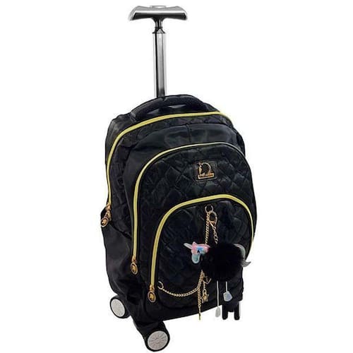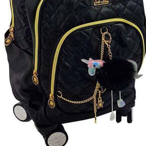 Mochila Escolar 360 Graus MC3766 Cor: preto Mochila Escolar Com puxador ajustavel a altura da crianca. Rodas super deslizantes e possivel usar nas costas ou puxando. Indicado para escolas, viagens e passeios. - Alça de mão.- 2 compartimento com ziper.- 2 bolsos laterais.- Com 4 Rodinhas- Compartimento para notebook. Perfeito para separar livros e cadernos- Chaveiro. Medidas em cm 46x25x31 axpxl N Ello COmercio vc encontra mochila pra familia toda. Marca: Plat1