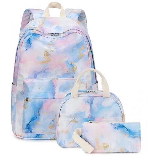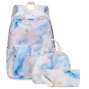 Modelo: Mochila escolar juvenil 3 peças mármore rosa azul roxo dourado