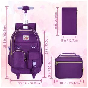 Modelo: Mochila escolar com rodinhas 3 peças roxa