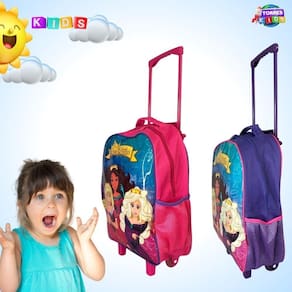 CONTÉM:01 Kit Mochila de Rodinha Princesas com 3 Peças Rosa/Roxo.