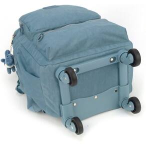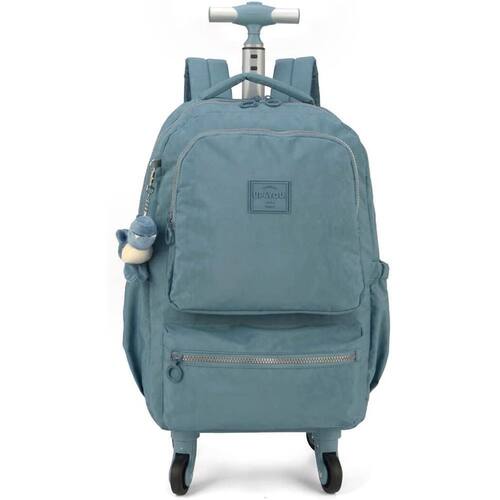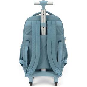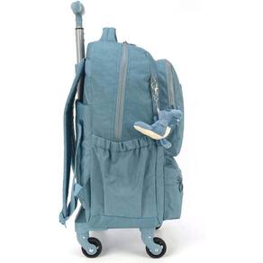 Mochila Rodinhas Notebook Tecido Crinkle Chaveiro Pelúcia Dino Azul