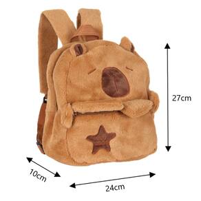 Mochila de Costas Luxcel Capivara   A Mochila de Costas da Capivara Luxcel é perfeita para transportar seus pertences para uso diário. Apresentamos a Mochila de Pelúcia Capivara, o acessório perfeito para quem adora um estilo único e divertido! Feita com um material de pelucia incrivelmente macio, essa mochila é aconchegante e ainda cabe tudo o que você precisa para o dia a dia. As alças ajustáveis proporcionam mais conforto no transporte, enquanto o formato ergonômico distribui melhor o peso nas costas.    Características da Mochila Escolar: - 1 Bolso Principal com bastante espaço - Alça de mão reforçada na parte superior - Alças de costas ajustáveis - Fechamento em Zíper - Material: 100% Plush - Forro: 100% Poliéster   Dimensões Aproximadas: - Altura: 27 cm - Largura: 24 cm - Profundidade: 10 cm