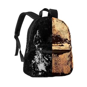 - mochila confeccionada em material poliéster. - com bordado em paetê de dupla face sendo preto e dourada - com alças acolchoada com regulagem. - com alça de mão. - com zipe personalizado.