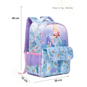 Mochila escolar cinderella disney 16 - elegância e magia para acompanhar as pequenas Transforme a rotina escolar em um verdadeiro conto de fadas com a mochila da cinderella inspirada na princesa que sonha com um mundo melhor, essa mochila traz funcionalidade, charme e muito brilho para o dia a dia das pequenas. Com frente em cetim com detalhes vincados, a peça exibe uma arte encantadora da cinderella, enriquecida por patches emborrachados que dão um toque especial ao visual. O modelo conta com dois bolsos frontais com tampa, ideais para organizar itens de fácil acesso com praticidade. As alças de ombro estampadas são acolchoadas, assim como a alça de mão, garantindo conforto no uso diário. O piping com glitter, o zíper tratorado e os puxadores emborrachados personalizados completam o visual mágico com detalhes encantadores. Produzida em cetim de alta qualidade, essa mochila licenciada oficial disney é perfeita para unir estilo, conforto e a magia da cinderella em cada aventura - frente em cetim com detalhes vincados; - dois bolsos frontais com tampa; - detalhes em patches emborrachados; - zíper tratorado; - puxadores emborrachados personalizados; - alça de mão acolchoada; - alças de ombro estampadas; - piping com glitter; - material: cetim Dimensões: - largura: 30cm - altura: 40cm - comprimento: 15cm Peso: 500gr Cuidados: - guarde em um local seco e arejado evitando locais úmidos. - evite colocar excesso de peso no produto para não forçar os zíperes e costuras. - proteja os objetos cortantes e/ou pontiagudos evitando o contato direto com o produto. - evitar altas temperaturas. - cores claras poderão manchar quando em contato com outros objetos ou roupas de cores pigmentadas.