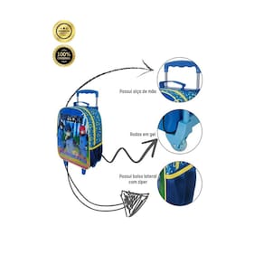 Mochila com Rodas: Confeccionada em Poliéster Fechamento em zíper 1 Compartimentos espaçoso 2 bolsos laterais para garrafa Possui RODAS e ALÇA DE MÃO Design exclusivo Material de alta qualidade Medidas aproximadas: Altura: 40 cm Largura: 15 cm Comprimento: 30 cm