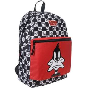 Com design exclusivo xadrez preto e branco do querido Patolino dos Looney Tunes, esta mochila apresenta todos os personagens clássicos em padrão único que conquistou fãs no mundo todo.