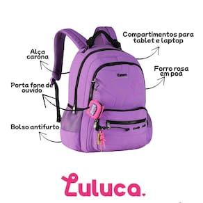 A Mochila Luluca é a opção ideal para meninas que buscam uma mochila confortável e estilosa, tanto para o ambiente escolar quanto para os momentos de lazer.