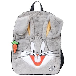 Com design exclusivo em pelúcia macia cinza do querido Perna Longa, o coelho mais famoso dos Looney Tunes, essa mochila é perfeita para crianças que adoram fofura e diversão.