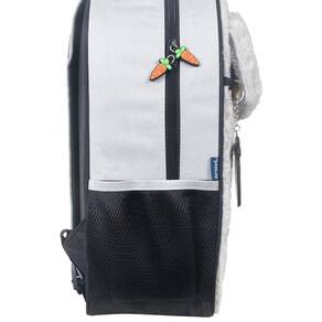 Feita com materiais Oxford e Poliéster de alta qualidade com frente em pelúcia resistente, ela oferece amplo espaço interno, 2 bolsos laterais e detalhes especiais como cenouras decorativas nos zíperes e chaveiro temático para carregar tudo o que você precisa no dia a dia escolar.