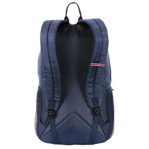 Mochila com bolsos laterias em tela com elástico, alças de costas reguláveis, bolso lateral em tela com elástico, forro personalizado, alça de mão e etiquetas personalizadas.