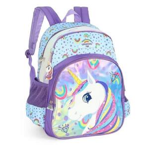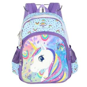 Mochila escolar de costas unicórnio Cor: roxo Descrição do produto Mochila de costas luxcel up4you unicórnio. Mochila com bolsos laterias em tela com elástico, alças de costas espumadas e reguláveis, silk frontal, bolso frontal com zíper, alça de mão e etiquetas personalizadas. Características principais:. Dimensões: aproximadamente 41 x 30 x 14cm axlxp ., volume: aproximadamente 17 litros., contra defeito de fabricação., . Nome: mochila de costas luxcel up4you unicórnio colorido Gênero: unissex Departamento bs: acessórios Indicado para: dia a dia Origem: nacional