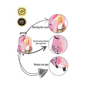 Mochila com Rodas: Confeccionada em Poliéster Fechamento em zíper Puxadores personalizados Compartimentos espaçosos 2 bolsos laterais para garrafa Possui RODAS e ALÇA DE MÃO Design exclusivo Etiqueta de identificação na parte traseira Medidas aproximadas: Altura: 45 cm Largura: 15 cm Comprimento: 30 cm CUIDADOS: - Guarde em um local seco e arejado evitando locais úmidos. - Evite colocar excesso de peso no produto para não forçar os zíperes e costuras. - Proteja os objetos cortantes e/ou pontiagudos evitando o contato direto com o produto. - Evitar altas temperaturas. - Cores claras poderão manchar quando em contato com outros objetos ou roupas de cores pigmentadas.