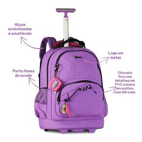 Mochila Escolar de Rodas Luluca Pandinha Juvenil Meninas - Cor: Lilás