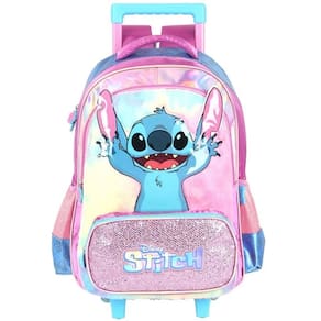 Mochila Escolar Infantil Disney Stitch 2 em 1: utilize como mochila de rodinha ou de costas, adaptando-se a cada momento!