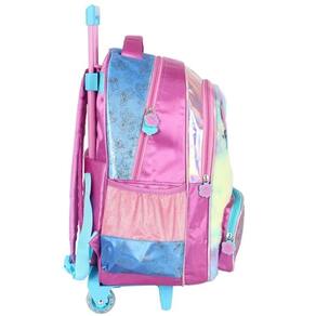 Bolso Frontal com Brilho Holográfico: Efeito visual moderno e estiloso, perfeito para destacar a mochila no ambiente escolar.