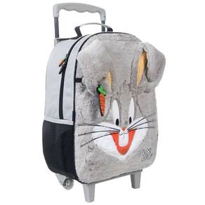 Feita com materiais de pelúcia de alta qualidade e estrutura resistente, ela oferece sistema de rodinhas suaves, zíper especial com pingentes de cenouras temáticas, porta garrafa lateral em mesh e identificador traseiro personalizado, transformando o transporte escolar em uma experiência divertida e prática com o coelho mais astuto dos desenhos clássicos.