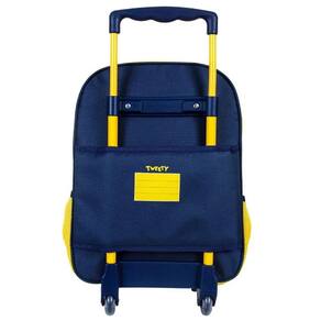 Feita com materiais de pelúcia de alta qualidade e estrutura resistente azul marinho, ela oferece sistema de rodinhas suaves, porta garrafa lateral amarelo em mesh e identificador traseiro personalizado, transformando o transporte escolar em uma experiência divertida e prática com o passarinho mais fofo dos desenhos clássicos.