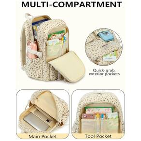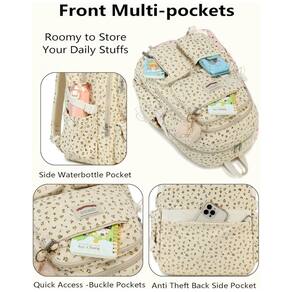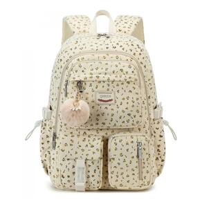 A mochila QHRIDS em veludo cotelê bege com estampa floral é uma mochila grande para alunas do ensino fundamental, médio e universitário, com compartimento para notebook e múltiplos bolsos para organização do material escolar e itens pessoais. O tecido em veludo cotelê é leve, macio ao toque e de alta densidade, com costuras reforçadas e zíperes de boa qualidade, oferecendo maior durabilidade no uso diário.