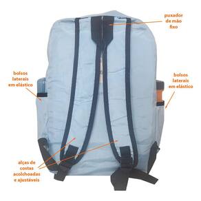 Mochila: A mochila tem capacidade para transportar objetos pessoais, como livros, cadernos, eletrônicos, roupas, e muito mais. Ela tem alças nas costas para facilitar o transporte e tem bolsos laterais para a organização e armazenamento de garrafinhas, por exemplo. Uma mochila super útil para estudantes, viajantes e pessoas que precisam carregar itens diversos. Medidas aproximadas da mochila em cm: AxLxP 43x33x17