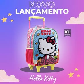 Mochila Escolar Hello Kitty Bolsa Feminina Mala Rodinhas 16L
