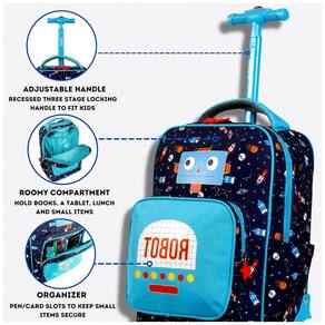 Rolling Backpack For Kids Funciona como uma mochila escolar com rodas e bagagem de mão para crianças que viajam. Tamanho infantil Menor do que uma mochila de tamanho normal, esta mochila leve pode começar como uma mochila pré escolar para meninas e meninos e ser usada durante a escola primária. Converte rapidamente Puxe as alças da mochila em segundos para carregar nas costas. Quando estiver pronto para começar a enrolar novamente, basta dobrar as alças na abertura na parte de trás da mochila com rodinhas. Para crianças a partir de 3 anos Marca: Não Informado
