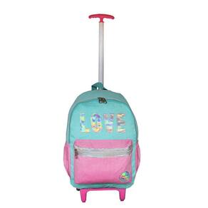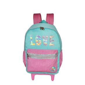 Mochila Escolar Rodinhas Love Juvenil Denlex HolográficaTem um bolso principal para colocar livros, cadernos, apostilas, além de outros itens escolares e tem um bolso frontal para colocar demais itens que acharem necessário.Informações :- Mochila de rodinhas de silicone rígido, maior durabilidade.- Alça de transporte reforçada com dupla costura.- Zíper personalizado dando um destque a mais na mochila.- Estampa com escrita holográfica e glitter dando um charme a mais na mochila, pois ela fica brilhante.- Bem espaçosa e com 2 bolsos, sendo um principal para colocar livro, cadernoa, apostilas e um outro bolso frontal para colocar itens menores.- 2 Bolsos laterais para colocar garrafa de água, suco ou refrigerante.- Mochila linda, sua filha vai amar.Dimensões :Altura : 40 cmLargura : 26 cm.Profundidade : 16 cm.Capacidade : 17 litrosAltura da haste em relação ao nível do solo : 85 cm.