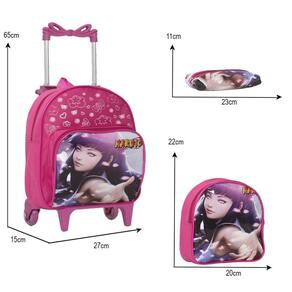 Kit Mochila Escolar Infantil Hinata Rodinhas, acompanha lancheira e estojo. Possui alça de mão reforçada. Agora você pode levar sua mochila no seu dia a dia ou acompanhar você na escola. Sua abertura maior se dá por zíper com puxador. Na parte de dentro possui amplo espaço para a guardar diversos materiais como cadernos, livros e estojos. Na parte da frente, possui bolso com zíper para a guardar pertences de menor tamanho e bolsos laterais.