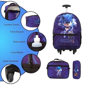 Não perca mais tempo e garanta agora mesmo o Kit Mochila Escolar Infantil Sonic Rodinhas com lancheira e estojo. Seus filhos vão adorar essa opção divertida e prática para levar seus materiais escolares! Marca: Não Informado