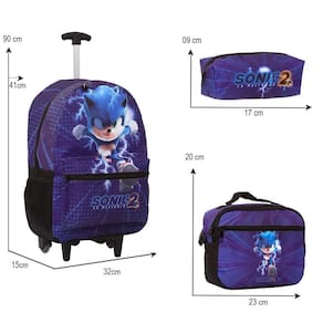 A Mochila Infantil Masculina Rodinha Sonic 2 Com Lancheira tem as seguintes medidas: 41cm de altura, 15cm de largura e 32cm de comprimento. Além disso, possui alça ajustável para melhor conforto durante o uso. Seus filhos vão adorar levar seus materiais escolares com muito estilo e diversão!