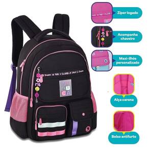 Cor: preto Tamanho: único Genero: unissex A mochila é confeccionada em poliéster com aplicação de patch que muda a estampa quando passa a mão. É uma coleção super descolada e alto astral da luluca. Possui compartimento para notebook e muitas estampas legais Características: Material: poliéster Alças acolchoadas reguláveis Puxadores personalizados Bolso frontal espaçoso 7 bolsos externos Bolsos laterais de telinha Compartimento interno para notebook