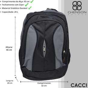 Com duas divisórias, alças nas laterais ajustáveis, dois bolsos laterais em tela de nylon com elástico, alças para transporte almofadadas, reguláveis e reforçadas. Com 29 litros de capacidade, ela vai ser sua companheira ideal para todos os momentos.