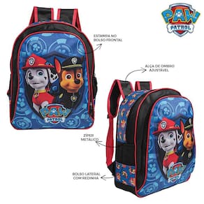 Kit Mochila Escolar Infantil Patrulha Canina De Costas, acompanha lancheira e estojo. Possui alça de mão reforçada. Agora você pode levar sua mochila no seu dia a dia ou acompanhar você na escola. Sua abertura maior se dá por zíper com puxador. Na parte de dentro possui amplo espaço para a guardar diversos materiais como cadernos, livros e estojos. Na parte da frente, possui bolso com zíper para a guardar pertences de menor tamanho e bolsos laterais.