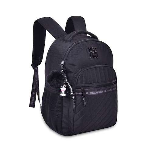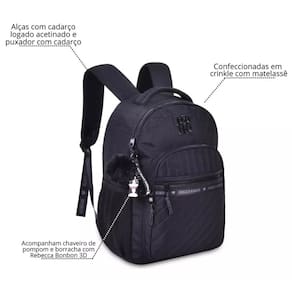 Mochila Escolar Preta Crinkle com Matelassê Rebecca Bonbon - Elegância e Praticidade para a Volta às Aulas!