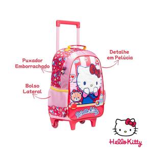 Mochila Escolar de Rodas Hello Kitty Pelúcia Meninas Infantil - Xeryus