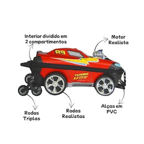 Velocidade e estilo no caminho da escola! Inspirada nos carrões mais radicais, a mochila Turbo Max traz um visual poderoso em formato de carro, com relevo 3D, motor e rodas realistas, para deixar a rotina escolar muito mais emocionante! Com rodinhas triplas que garantem estabilidade e praticidade, dois compartimentos internos espaçosos e alças em PVC reforçado, essa mochila é perfeita para quem adora velocidade e aventura! Perfeita para acelerar rumo a um ano cheio de conquistas!