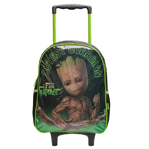 Em tamanho 16", produzida em poliéster resistente e estampado. Painel frontal PVC Cristal - Compartimento principal amplo, 2 bolsos laterais mesh, zíper com puxadores simples e alça de mão em nylon . Carrinho em metal com travas.