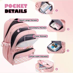 - Grande capacidade: esta linda mochila possui 1 bolso principal, 5 bolsos com zíper, 2 bolsos laterais e vários compartimentos internos. O compartimento principal acomoda facilmente fichários, livros didáticos e lancheiras A4. O bolso frontal secundário mantém os itens essenciais da escola, como cadernos e estojos de lápis, organizados, enquanto os bolsos laterais elásticos seguram garrafas de água e guarda-chuvas para acesso conveniente