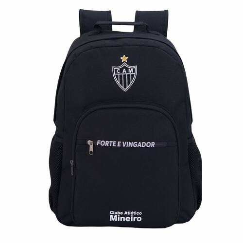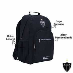 Características: - Confeccionada em Poliéster - Dois bolsos laterais em mesh - Puxadores de zíper personalizados - Escudo oficial do Atlético Mineiro estampado bordado - Compartimento principal espaçoso + bolso frontal - Alças acolchoadas e ajustáveis